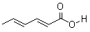 防腐劑、抗氧化劑、穩定劑。山梨酸是新型、安全、無毒、高效的食品添加劑,是不飽和脂肪酸,進入人體后參與正常的脂肪代謝,最后被氧化成水和二氧化碳,不會在人體內蓄積,具有很高的安全性,其毒性僅為食鹽的1/2,是苯甲酸鈉的1/40。山梨酸已在全世界范圍內使用并被成功地用于食品工業的許多方面。山梨酸對霉菌、酵母菌和好氣菌有明顯的抑制作用,其抑制發育的作用比殺菌作用更強,與微生物酶系統中的巰基結合,從而破壞酶的活動,達到抑菌、防腐的目的。還能防止肉毒桿菌、葡萄球菌、沙門氏菌等有害微生物的生長和繁殖。在酸性條件下(pH值低于5~6),抑菌效果更佳,食品的成分對防腐效力無影響,從而達到有效地延長食品的保存時間,并保持原有食品的風味。但其對厭氧性芽孢菌與嗜酸乳桿菌等有益微生物幾乎無效。